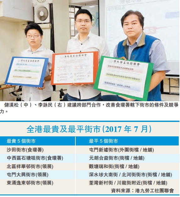 儲漢松續指出,不要以為政府街市就一定較便宜,從數據顯示,在去年7月,食環署街市的食品價格最貴,較街檔/地舖高出29.1%,領展街市的食品價格則較街檔/地舖高出24.8%。情况至今年雖略有改善,食環署街市較領展街市為平,但仍較街檔/地舖高出15.7%,領展街市則較街檔/地舖高出18.9%。最貴的5個街市均由食環署、領展管理或營運(詳見附表)。