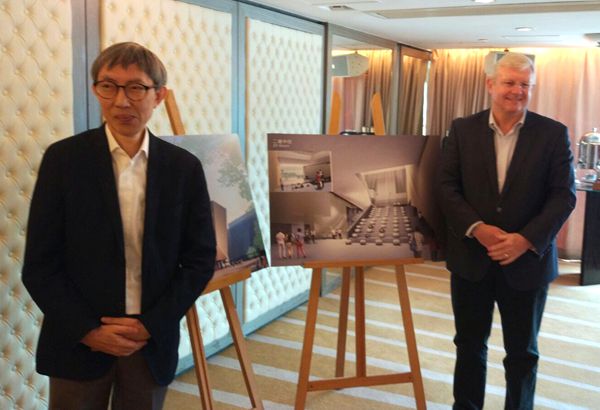 栢志高(右)及嚴迅奇(左)簡介香港故宮文化博物館項目。記者馮煒強攝