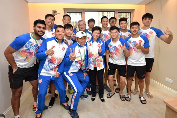 行政長官林鄭月娥和新一屆特區政府積極在房屋、創科、青年等多個方面推出新政策。圖為林鄭月娥今年8月在天津全運會上探望香港運動員為他們打氣。資料圖片