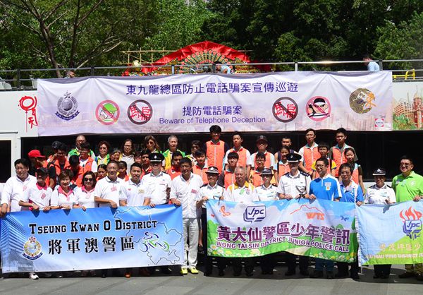 警方在黃大仙區舉辦宣傳防止電話騙案的巴士巡游。