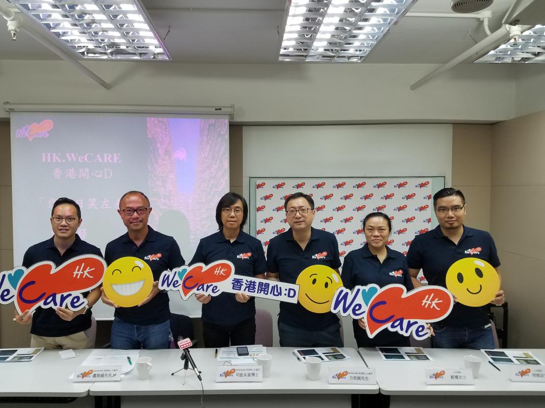 HK.WeCARE顧問團成員盧瑞盛(左二)及司徒永富(左三)公布「香港開心D」調查計劃。