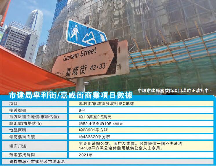 綜合市場估計,項目每方尺樓面地價約1.9萬至2.5萬元,總估值介乎約82億至約109億元之間,有望成為附近一帶新「百億商地王」。