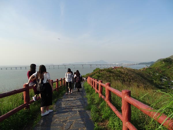 登上虎山,可以遠眺中華白海豚的棲息地,幸運時更可看到海豚出沒。若沒有見到,也可與中華白海豚雕像合照留念。虎山不但可俯覽大澳,也是觀賞日落的好地方,天晴時更可以港珠澳大橋作為拍照的背景。 文、圖:莊海源