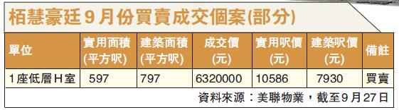 美聯物業栢慧豪園分行(2)物業顧問翟玲表示,C室單位受較多買家青睞,因單位座向東北偏東,鄰近輕鐵天榮站,同類型單位放租價格約1.2萬元至1.25萬元,租金回報約2.7厘至約2.9厘。翟續指,現時「栢慧豪園」及「栢慧豪廷」放售單位約100個左右,當中包括2房單位、3房1套單位,以及特色單位等,屋苑的成交幅度為平穩上升。