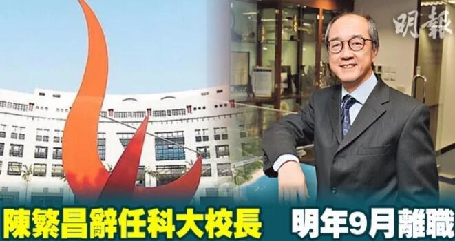 今年6月,科大校長陳繁昌也突然辭了職,宣布離任的決定較預期提早了整整1年。陳校長辭職是認為越早啟動招聘程序,對科大往後發展越有優勢,換句話說是為學校考慮。