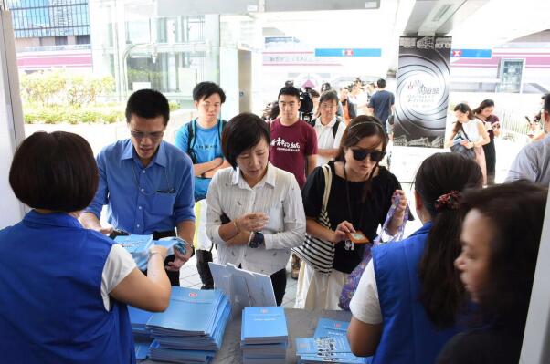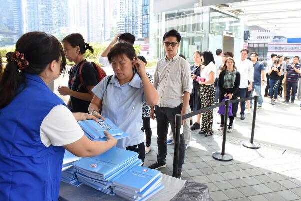 在观塘民政咨询中心,不少市民前来领取施政报告。(刘深摄)