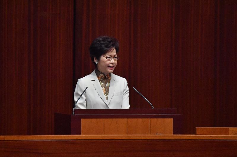 行政长官林郑月娥发表《施政报告》。 路透社和政府新闻网