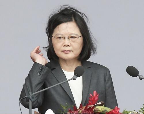 蔡英文发表演说,重提“四不”。(图片来源:台湾《联合报》)