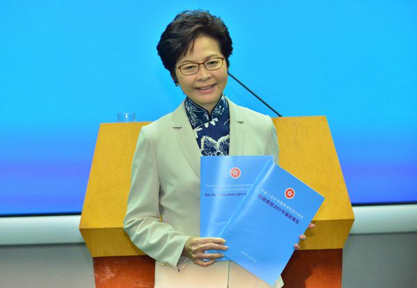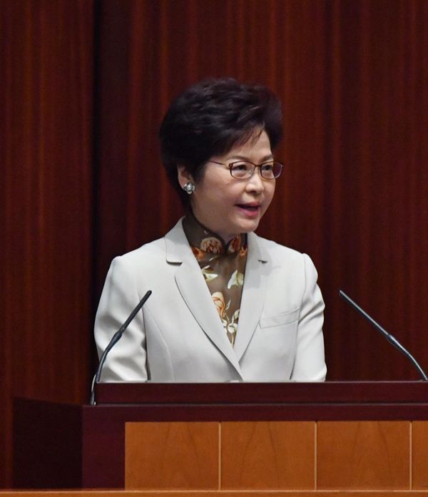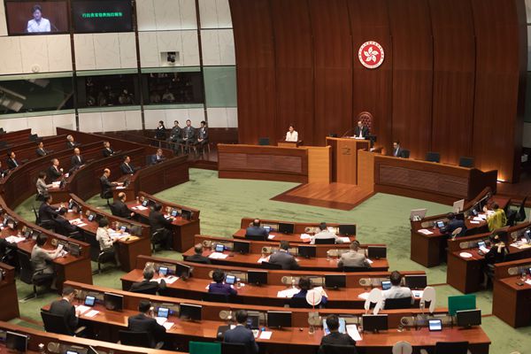 立法會議員聽取林鄭月娥發表的《行政報告》。中新社