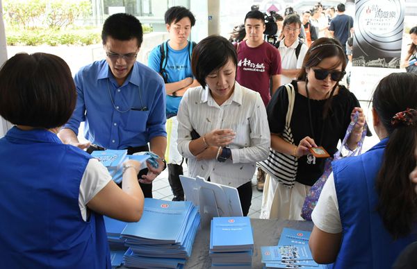 市民紛紛到政府總部領取《施政報告》。記者馮瀚文攝