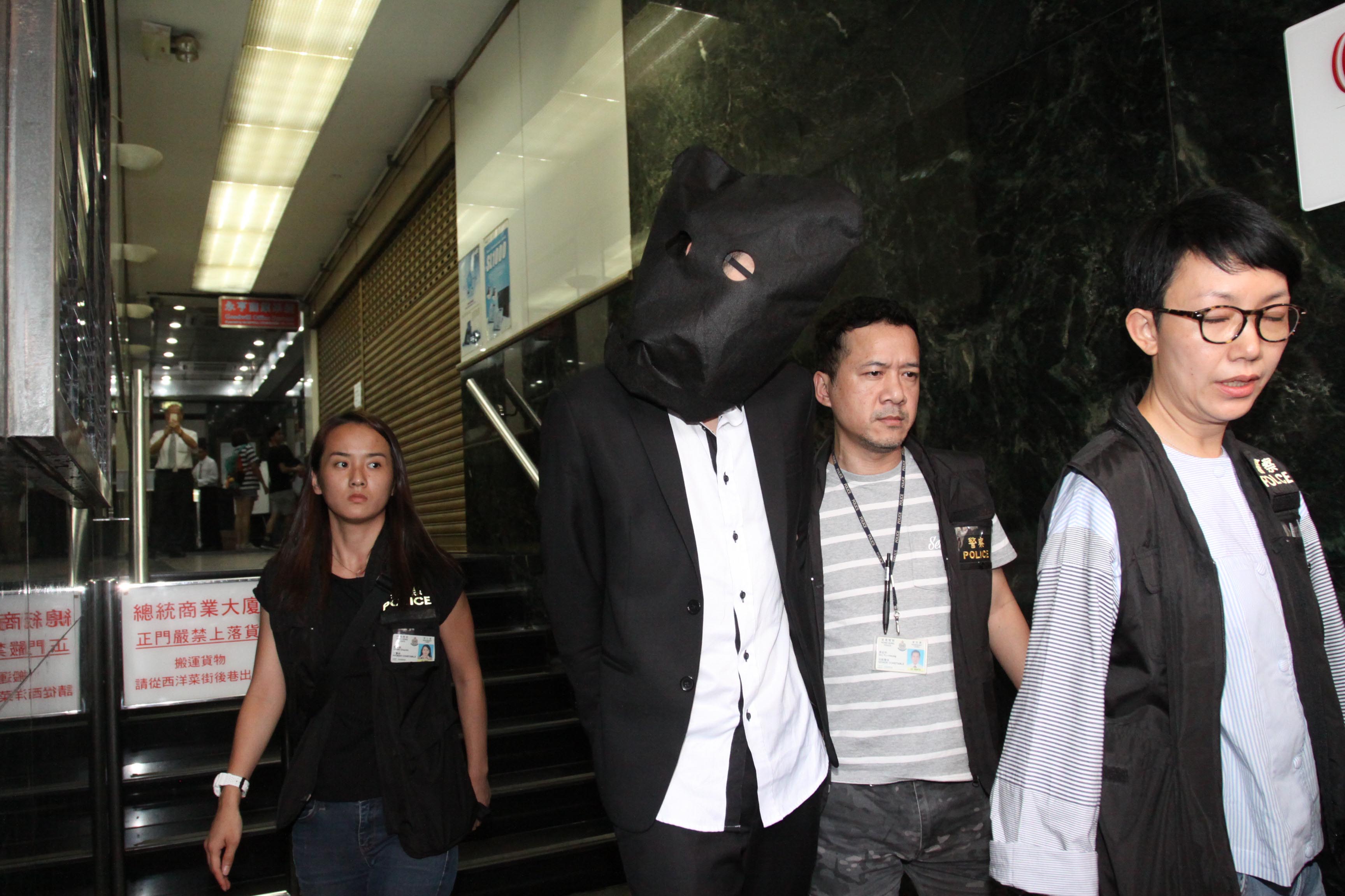 疑犯被蒙头带署。记者区天海摄