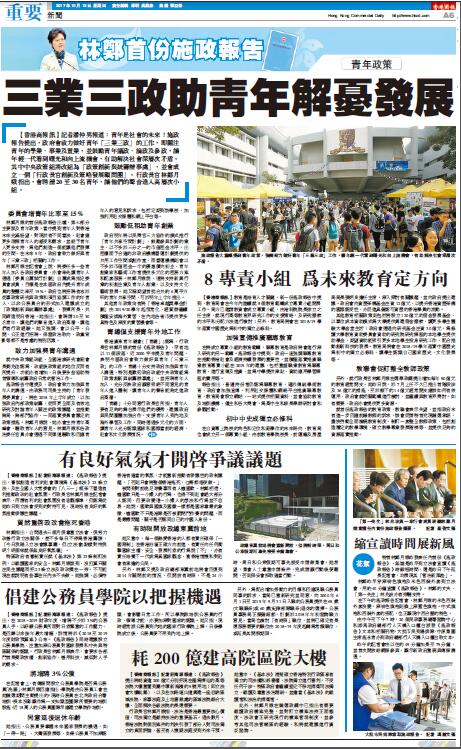 施政報告大篇幅提到青年政策,強調致力做好青年「三業三政」工作,讓年輕一代看到曙光和向上流機會,有助解決社會深層次矛盾。