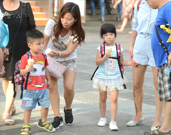 天氣酷熱,小朋友吃冰涼雪糕解暑。記者 崔俊良攝