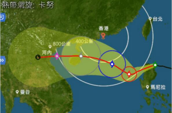 【香港商报网讯】据橙新闻报道,熱帶風暴「卡努」路徑進一步靠近香港,今早5時已經向北調整,料周日進入本港400公里內,周日密雲間中有狂風大雨,情況延續至下星期一,雨勢頗大及有狂風。