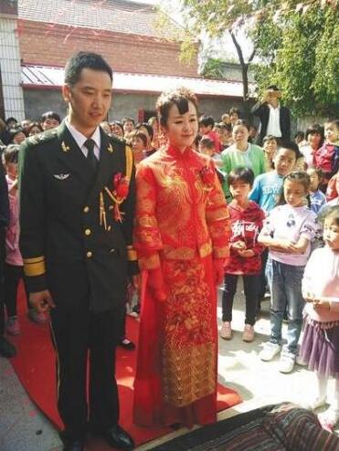 记者了解到,这场婚礼的主人公、1985年出生的新郎贾志新,在部队服役已14年,在村里算个“老小伙子”,而新娘李晓利在邯郸市一家公司做内勤。