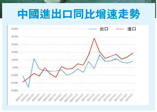 進口方面,連平表示,9月增速比較快,說明內地需求良好,這是由於供給側結構性改革深入,實體經濟經營改善,明顯拉動了進口。連平還表示,值得注意的是,中國貿易雖然仍在穩步上昇,但順差在減小。9月貿易順差1930億元,連續2個月有所收窄。從目前的態勢來看,中國進出口順差減小的趨勢是仍未停止的。這是因為進口的增長將會長期快於出口增長,這是由於中國人均GDP增長較快,消費能力越來越強,對海外產品的需求越來越大;而由於種種原因,出口增長速度較為平穩,不會超過進口。順差減小也不是什麼壞事,說明中國人的收入水平提高、消費水平提高,中國進出口的結構越來越向美國等發達國家靠攏。
