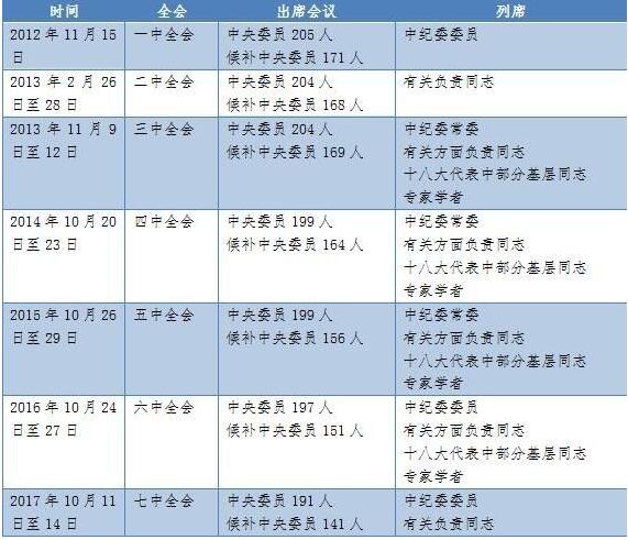 这一数字与十八届一中全会相比,已经有了很大的变化。政知见列了从一中全会到七中全会的出席和列席情况以作参考