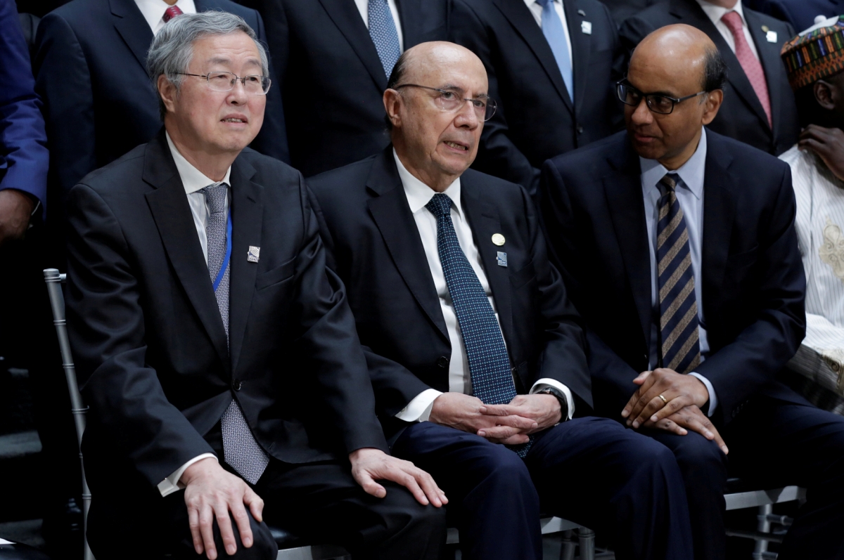 周小川(左)出席第36届国际货币与金融委员会会议。路透社