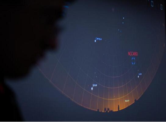 10月16日,在位于南京市的中科院紫金山天文台举行的新闻发布会现场,中科院紫金山天文台工作人员展示2017年8月18日南极巡天望远镜AST3-2观测窗口期观测引力波光学对应体模拟演示图片。新华社图