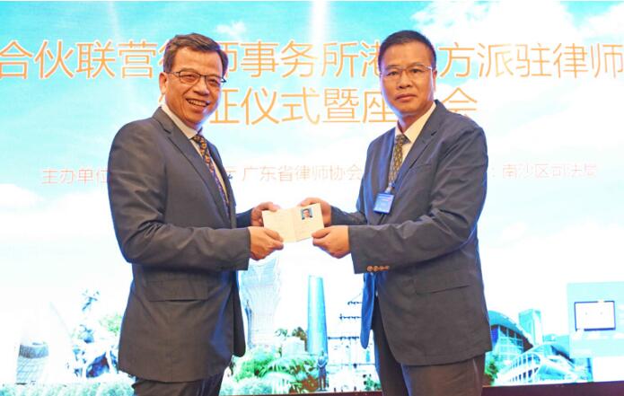 【香港商报网讯】记者李苑立报道:近日,42名港澳律师接过广东省司法厅厅长曾祥陆颁发的“合伙联营所港澳律师工作证”,成为国内首批获得内地证件的港澳律师。