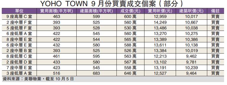 譚健璋補充指,目前美聯物業「YOHO TOWN」的放盤有35個,租金回報約2.6厘,而屋苑兩房入場單位為393平方尺,入場價約550萬元;3房入場單位為545平方尺,入場價為625萬元。