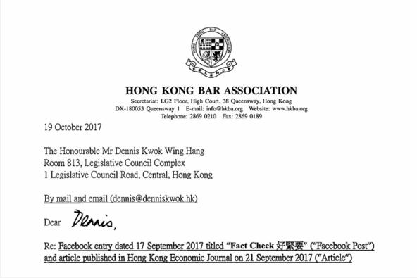 【橙訊】公民黨立法會議員郭榮鏗早前撰文批評,大律師公會不適宜就「一地兩檢」表態。公會19日罕有向郭榮鏗發公開信逐點反擊,指控對方引述的「事實不盡真確」(factual inaccuracies)、「不公義」(unjustified)。