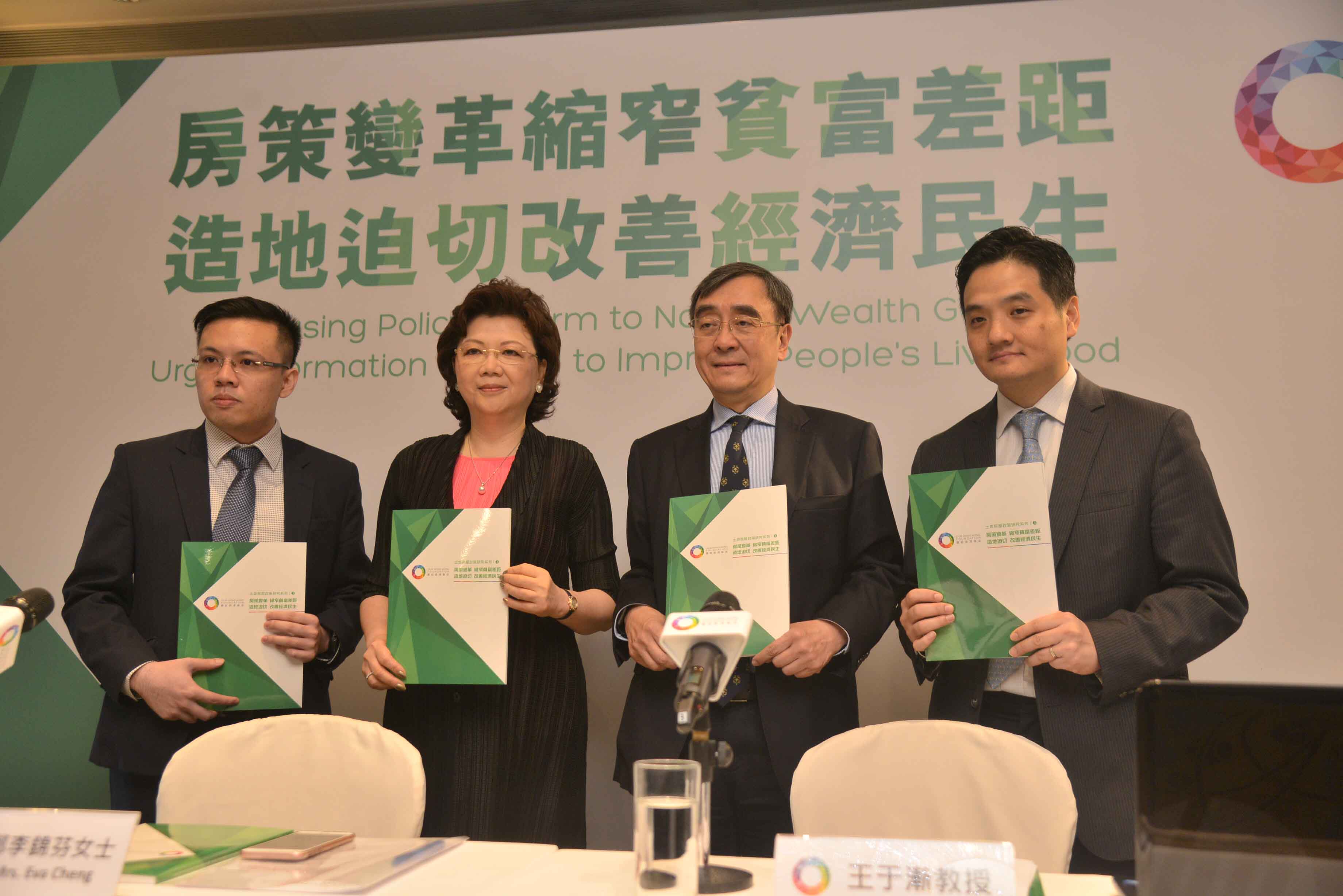 團結香港基金發表土地政策研究報告,左起至右分別為曾維謙、鄭李錦芬、王于漸、黃元山。記者蔡啟文攝