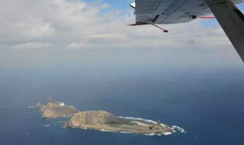 中国海监B-3837飞机上拍摄的钓鱼岛及其附属岛屿(资料图)