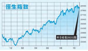 今周港股大部分時間於28100點至28400點反覆上落,市場觀望中資巨企公布第三季度業績,股份個別發展,水泥、醫藥及內險股初步業績顯示第三季度普遍續有強勁增長,刺激相關行業股份造好。昨日(26日)平保(2318)股價再創歷史新高,海螺水泥(914)亦升至近六年高位。