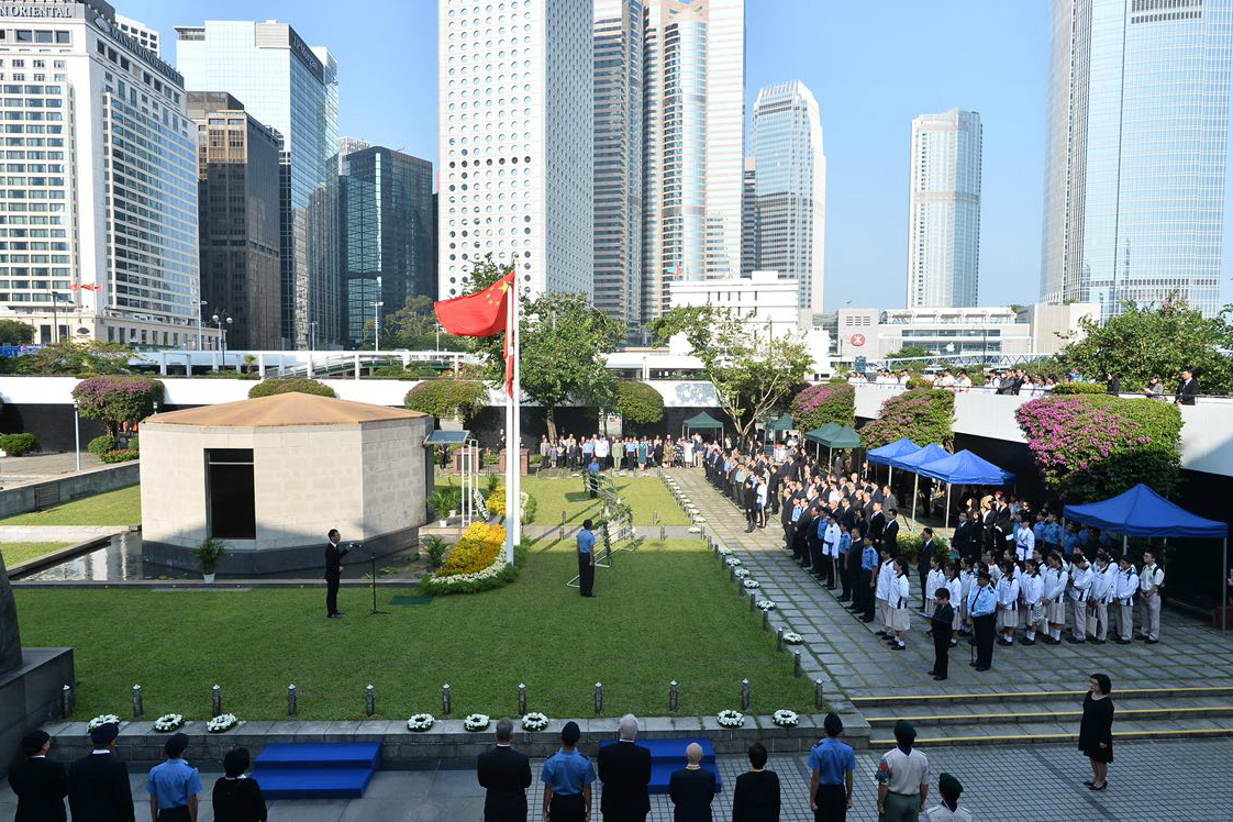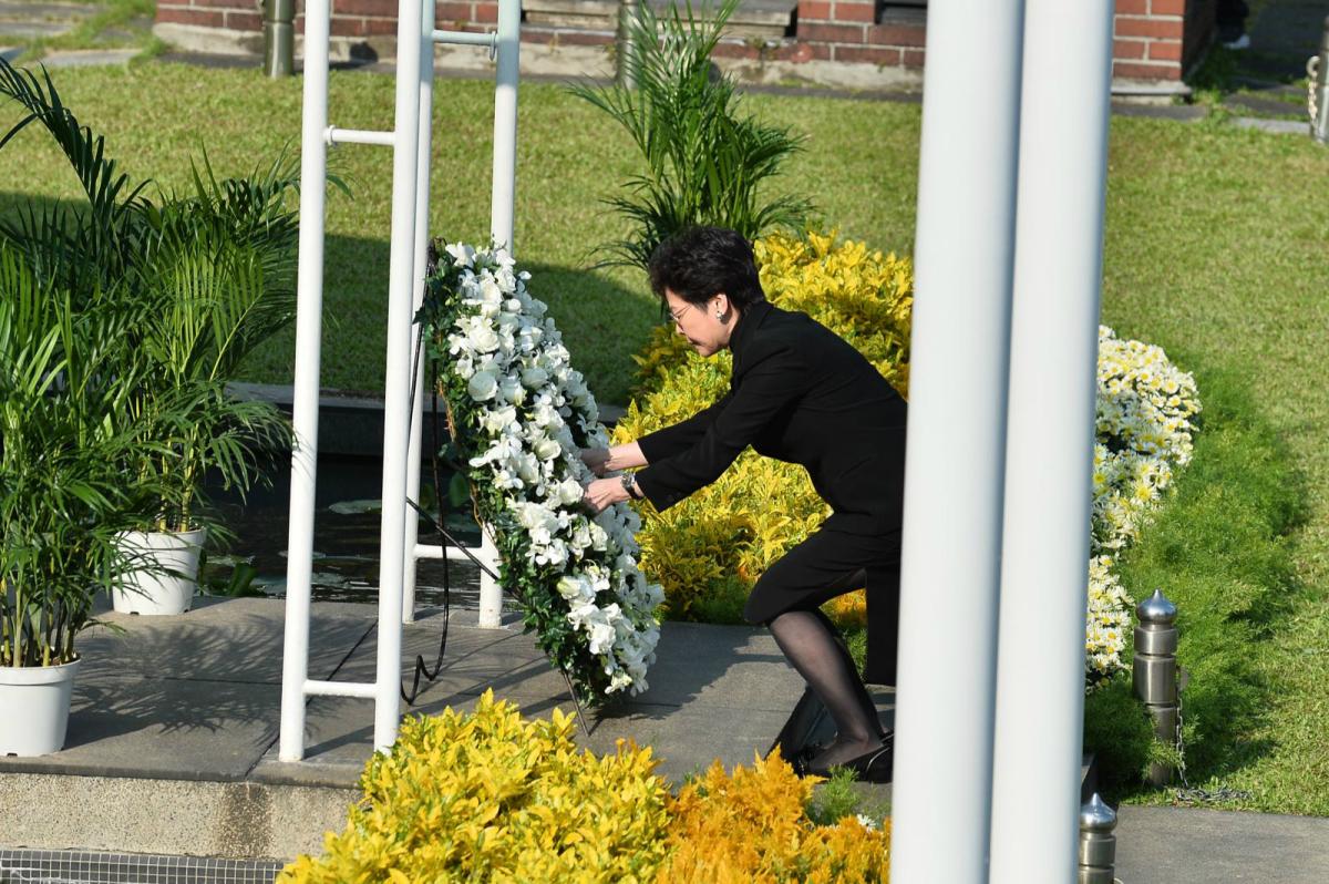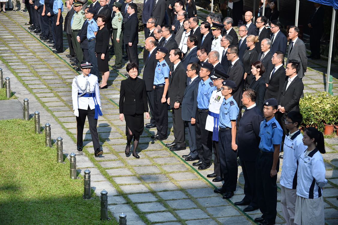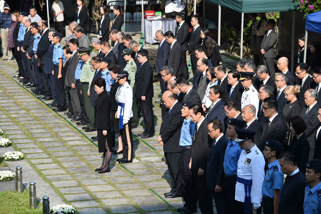 【香港商報網訊】特區政府于今日重陽節上午,在香港大會堂紀念花園舉行一年一度的官方紀念儀式,悼念於一九四一至四五年間為保衞香港而捐軀的人士。行政長官林鄭月娥出席儀式並致獻花圈。