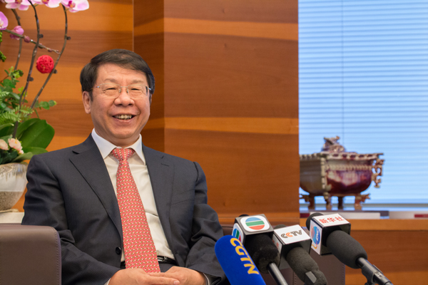 在前往禮賓府舉行儀式前,財政部特意安排了一場媒體記者見面會。史耀斌接受了一眾媒體的采訪。史耀斌表示是次美元主權債券受到全球投資者熱捧,認購非常踴躍,總認購倍數高達11倍,共獲得約220億美元訂單,超市場平均水平。是次5年期和10年期債券定價分別在美國債券的基礎上上浮15和25個基點。