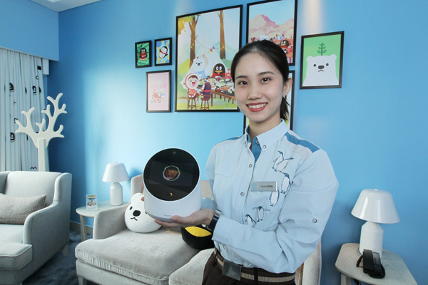 记者在开放体验的QQfamily主题智能样板客房里看到,不仅随处可见QQfamily六位萌趣成员的身影,住客更可以通过「小Q机器人」,对房间里的灯光、窗帘等进行多种智能化操控。