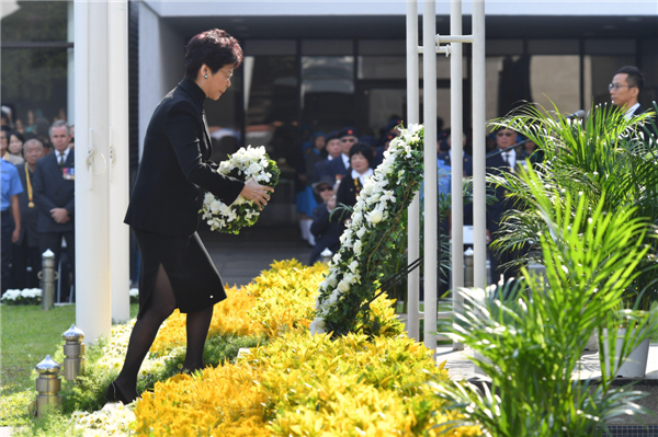 林郑月娥昨早出席官方纪念仪式,并在纪念龛前致献花圈。