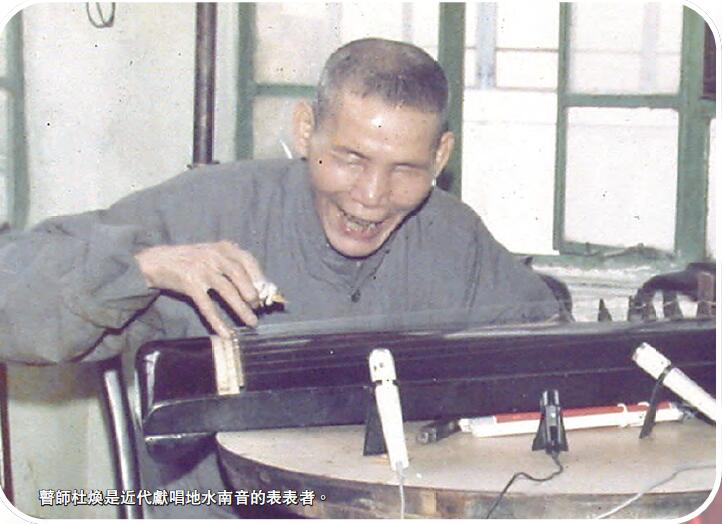 「地水南音」全為街頭賣唱的失明人士演唱,「地水」是失明人士的代稱,當時的失明人士因身體問題難以找尋工作,有些會從事占卜問卦或是按摩行業,有些則於街頭、茶樓、妓院或私人寓所演唱謀生。男稱為瞽師,女稱為瞽姬或師娘,他們都是自彈自唱,右手彈箏、左手打板。「地水南音」多以自身及社會民生為故事,內容主要抒發離愁別緒,音調較緩慢和悲慘;惟遇上喜慶日子便會加添板眼,令音調變得較為輕松。歌詞可使用文雅詩詞或通俗口語均可,以七字句為主,每句八拍,隨時隨地亦可朗朗上口,所以有些瞽師、師娘可以在半小時唱完故事,也可以像說書人般耗一年時間才唱完,更可一人演繹不同角色來獻唱,自由度極大。約於1920年代后期,「地水南音」開始式微,有指這是由於社區急速發展,高樓大廈林立,再沒有多餘地方予失明人士街頭獻唱,另亦有指是粵曲開始流行所致。