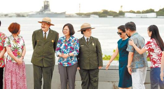 【观察者网 综合报道】28日,台湾地区领导人蔡英文展开所谓“太平洋‘友邦’之旅”,又玩起过境美国的把戏。据台湾《联合报》29日报道,蔡英文与随行人员28日抵达美国夏威夷,并身着俗称夏威夷衫的“岛屿装”亮相,与多位美国官员及学者会面。