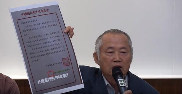 王献极称,国民党给共产党写的贺电,只写了“106年”(图片截自Youtube)