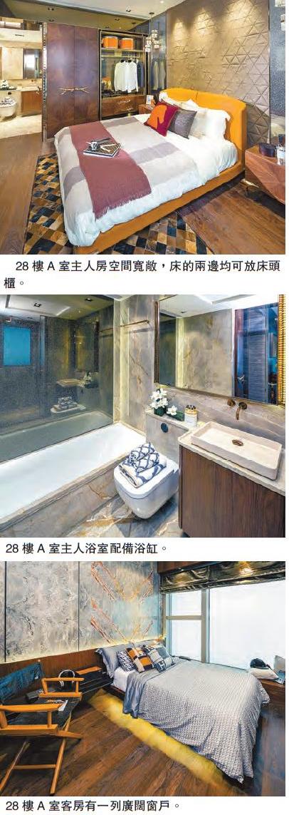 示范户以28楼A室为蓝本,使用面积996平方尺,原则为三房连套房加连厕储物房间隔。