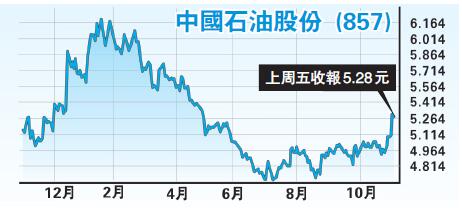 今年第四季度,全球石油市場基本平衡,國際油價將繼續維持區間震蕩態勢。在眾多利好中石油股價的因素下,公司股價可望進一步攀升,現時5港元之下已獲買盤支撐,預計半年後中石油可升至6.80港元阻力。