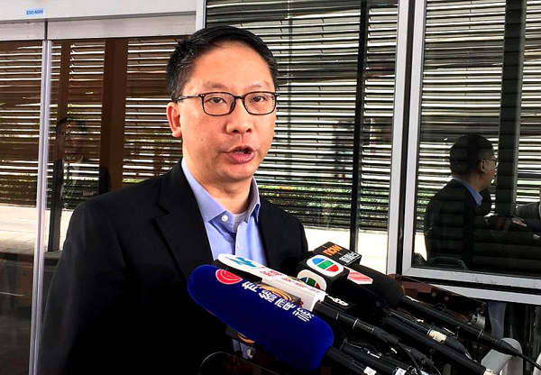 律政司司长袁國強出發外訪前于機場回應傳媒就國歌法的提問。