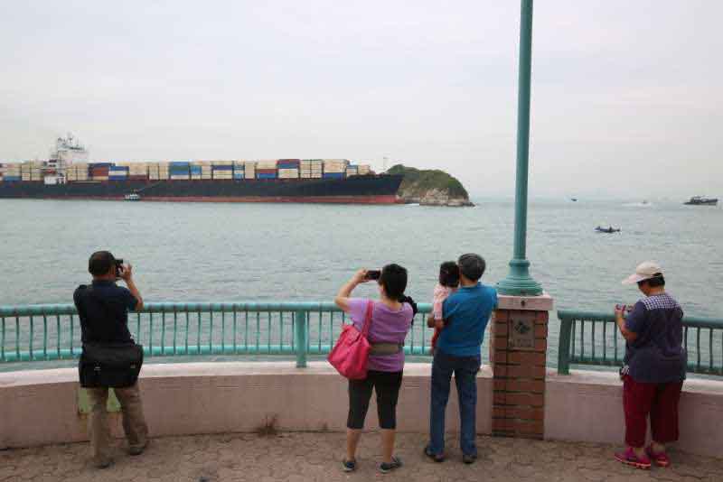 貨櫃船失控撞向火藥洲擱淺,市民均在岸邊拍照留念。