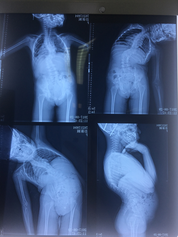 “小颖的先天性脊柱侧弯病情比较严重,其中胸8半椎体分解不全,胸11半椎体畸形,两个阶段半椎体之间的弯度在90度左右。” 颜滨指着小颖早前的x光片说,手术主要有三个难题,一是小孩年纪太小,病情发展速度会很快,同时也要考虑到小孩未来的骨骼生长问题,此外,小孩身子瘦,能否耐受手术也是一个问题,这些都需要进行相关检查。