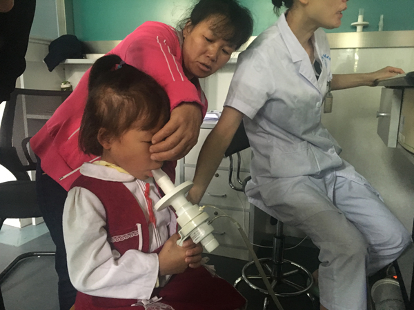 “吸气……憋住,10、9、8……2、1,呼气。”11月6日上午11点,深圳市第二人民医院肺功能检查室,一个小孩正在接受肺功能检查。“小颖好棒!”当小女孩配合医生顺利完成检查时,陪伴在她周边的人们不时鼓励道。