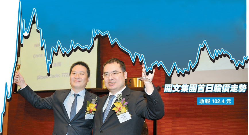 【香港商報网訊】記者鄭珊珊報道:股王騰訊(700)分拆出來的內地網上文學平台閱文集團(772),昨日在港交所(388)主板挂牌上市不負眾望,開市價已報90元,隨后氣勢如虹一路向上,開盤后僅17分鐘便升穿100元大關,晉身成「紅底股」,并隨即創全日最高位110元,隨后股價在100元至106元水平反覆整固,收市報102.4元,較招股價55元升約86%,每手賺9480元,成為過去十年來最賺錢的新股。