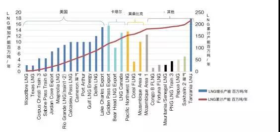 (图2 ,全球主要在建LNG项目以其产能)