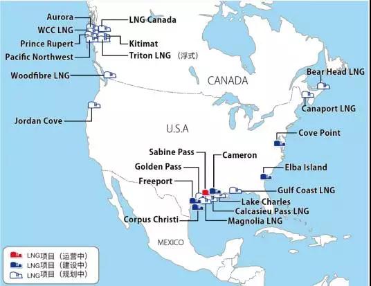 (图4,北美LNG项目运营,建设和规划图)