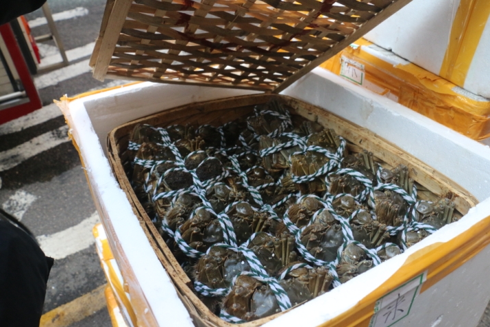 火警現場景福街99號啟德工廠大廈,其中租戶翁先生表示,早前在上址9樓租用約2000尺單位作為倉庫,擺放大型雪櫃儲存海鮮。他憶述說,在發生火警時,倉庫存放約200籮來自湖南大通湖的大閘蟹,每籮平均有40至80隻蟹,總數逾1萬隻,估計總值逾90多萬元。