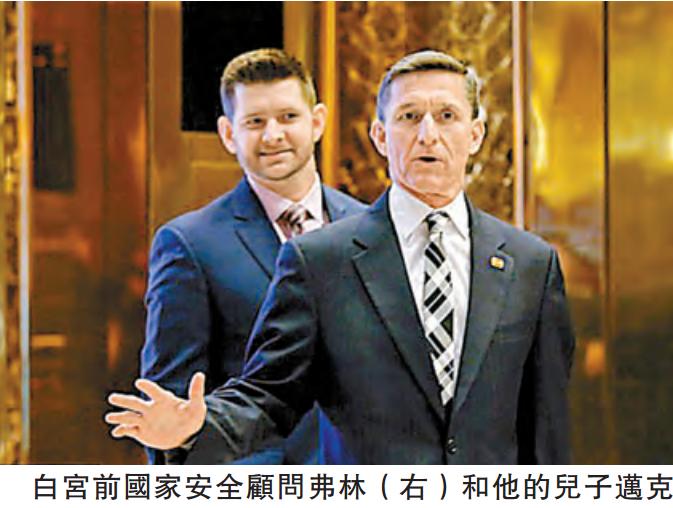 【香港商報网訊】據美媒昨天披露,美國白宮前國家安全顧問弗林和他的兒子邁克爾,被揭發於去年底特朗普當選總統後數周,曾與土耳其高官秘密會面。當時土方官員開價1500萬美元(約1.16億港元)作為報酬,要求弗林父子幫忙對付流亡美國、與土總統埃爾多安作對的伊斯蘭教士居倫,把他從美國帶回土耳其。