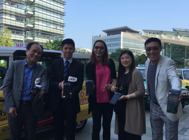 林籽妍(中)介绍的士移动支付服务。记者 鄺偉軒摄
