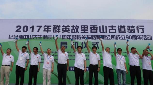 【香港商报网讯】记者李苑立报道:由广东省体育局、广东省住房和城乡建设厅、珠海市政府、中山市政府、中央政府驻澳门联络办公室宣传文化部、广东省交通集团有限公司联合主办的南粤古驿道文化之旅2017年群英故里香山古道骑行——纪念孙中山先生诞辰151周年及岐关车路有限公司成立90周年活动于12日在澳门、珠海、中山市境内举办。