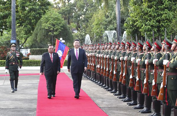 習近平強調,中老是社會主義友好鄰邦,傳統睦鄰友好歷久彌堅。建交56年來,雙方政治互信不斷增強,務實合作持續擴大,人文交流日益密切,兩國關系全面深入發展,給兩國人民帶來實實在在的利益。中老理想信念相通,兩國關系戰略定位高遠,發展空間廣闊。中方始終珍視中老傳統友誼,高度重視同老撾關系,願同老方攜手努力,不斷豐富和發展高度互信、互助、互惠的中老全面戰略合作夥伴關系,使兩國永遠做好鄰居、好朋友、好同志、好夥伴。